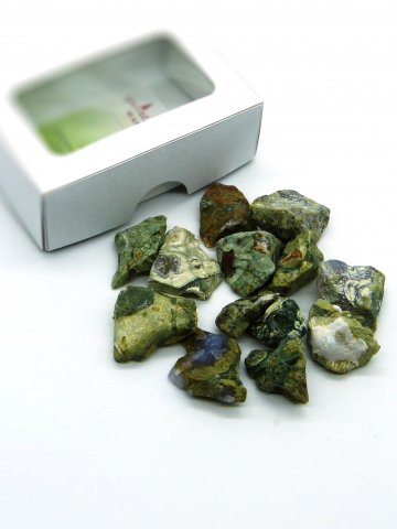 Hochwertige, entgratete Steine. Fair gehandelt. Mindestens 100g in einer recyclebaren Schachtel mit Sichtfenster.