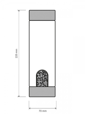 Glasflasche aus schadstofffreiem Borosilikatglas. Im Inneren der Flasche wird ein austauschbares Edelsteinmodul sicher verschraubt, in welchem sich fair gehandelte Edelsteine befinden.